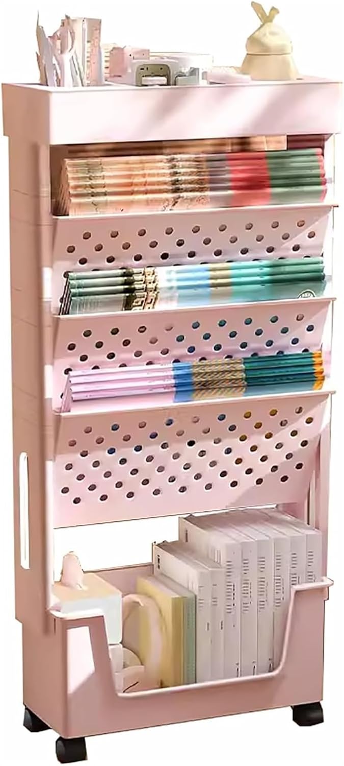 Introducing the Mobile Bookshelf With Wheels, the ultimate solution for decluttering and organizing your space! This versatile storage organizer is designed to meet the needs of modern homes, offices, and dorms. Made from high-quality metal, this Mobile Bookshelf offers durability and stability, ensuring it will serve you well for years to come.With its convenient wheeled design, you can effortlessly move this Mobile Bookshelf from room to room, making it perfect for dynamic environments where flexibility is key. Whether you need extra storage in your living room, a practical solution for your office, or an efficient way to organize your dorm, the Mobile Bookshelf is the ideal choice.This bookshelf combines functionality with style, fitting seamlessly into any decor. The compact dimensions make it a space-saving addition to any area, while still providing ample storage capacity for books, magazines, and office supplies.Colors: white, yellow, pinkSize: L37.5*W15*H78cm(L14.7*W5.9*H30.7in)Package contains: 1*mobile bookshelf cartSay goodbye to clutter and embrace a more organized lifestyle with the Mobile Bookshelf With Wheels. Easy to assemble with included instructions and tools, you'll have your new storage solution ready in minutes. Upgrade your home or workspace with this stylish and practical Mobile Bookshelf today!