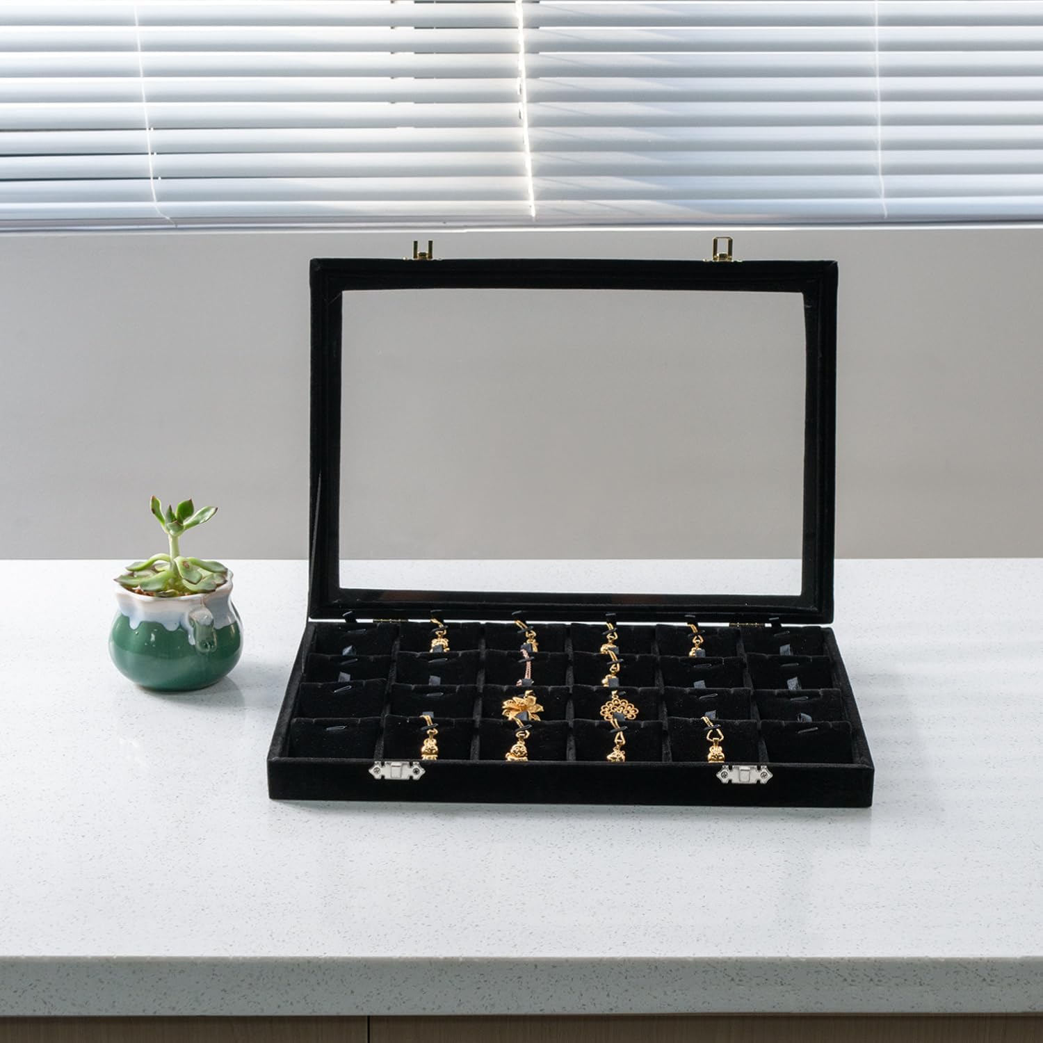 [Clear Glass Lid Cover] The large see-through glass lid of this 24 grid Necklace/Pendant case allows you to see and find the right jewelry necklace pendants at a glance ; also it’s durable and easy to clean.