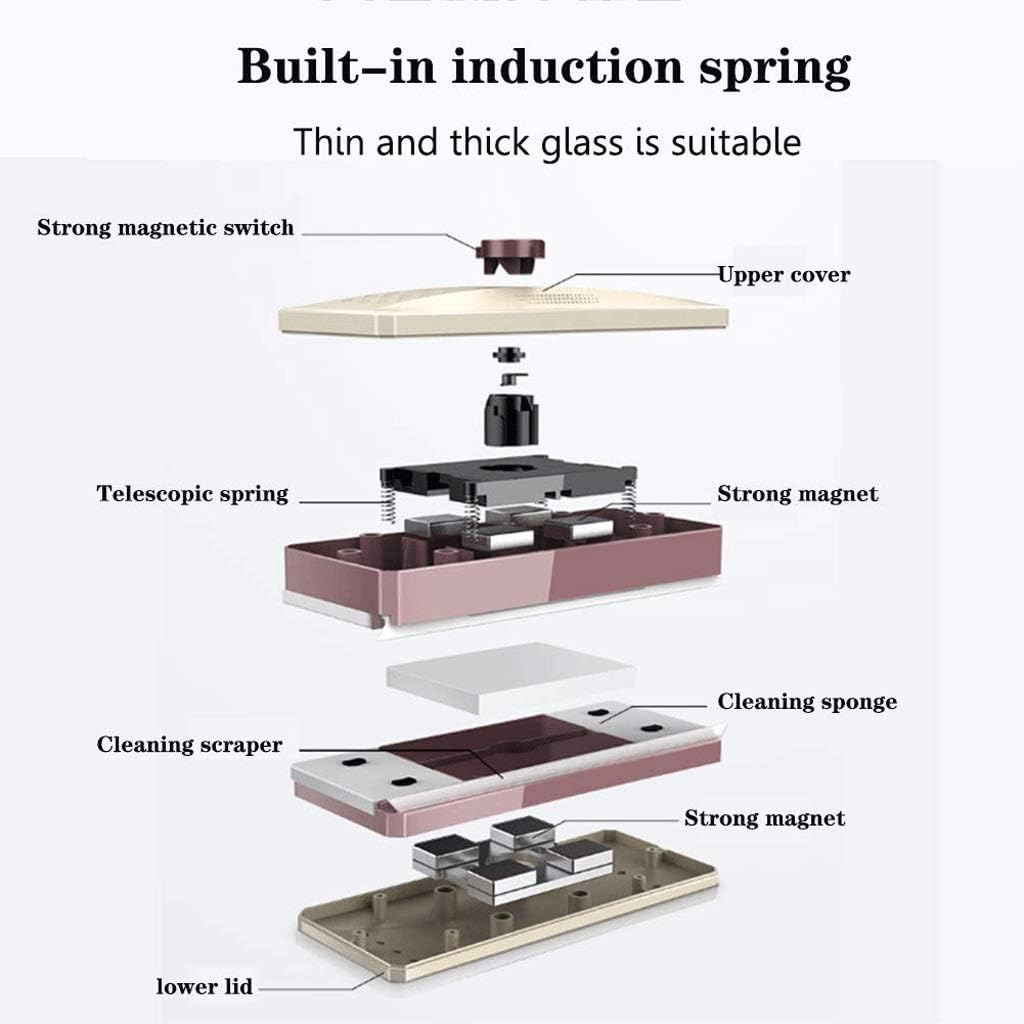 Clean both sides of the window, evenly push the sliding decontamination, the magnetic is super strong. rubber wiper strip, imitation car wiper strip design, soft and wear-resistantSafety anti-falling rope, the rope is tied to the hand during use, and it falls safely.Fully clean, no dead ends.Built-in water storage sponge, no need to repeat water.Spray water on both sides of the glass to completely wet the glass.Attach a safety cord and place the glass on each side of the glass.Move the magnetic adjustment button to adjust the strong magnetic state.Vertical cleaning of glass dustWipe the sewage in the horizontal directionRotate the glass to remove itMulti-purpose Glass Scraper: The glass scraper is ideal for cleaning the glass palette, oven, cooktop, ceramic top, and glass stove. Also is a sticker remover, which can help you remove stickers, decals, glued characters, labels, paint, paper, and carpet glue off the window