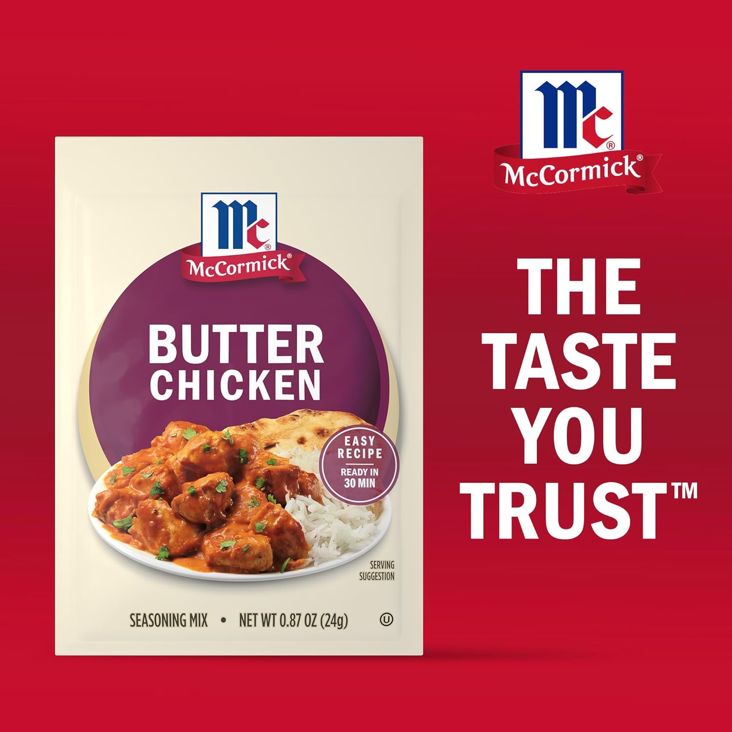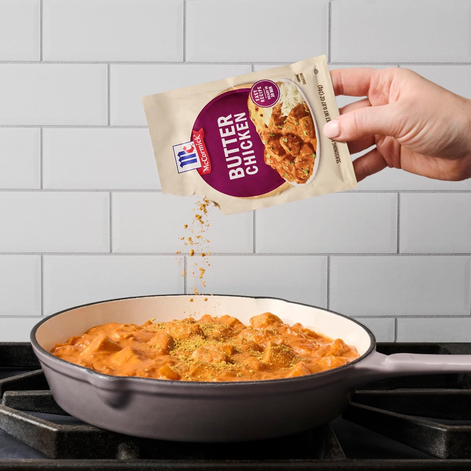 Hungry for the aromatic flavors of Butter Chicken from your local Indian restaurant? Prepare it at home … with McCormick Butter Chicken Seasoning Mix you can have this creamy, mildly spicy chicken dish on the table in 30 minutes! Made with coriander seed, cumin, turmeric, and cardamom, this seasoning mix contains a blend of fragrant spices or “masala” that makes it nearly failproof for you to recreate this dish in the comfort of your kitchen. To prepare our easy recipe, sauté chicken breast cubes, add butter, seasoning mix, and tomato sauce, and simmer. Sir in heavy cream or half-and-half and cook until sauce is nicely thickened. Serve over cooked basmati rice and you will have a restaurant-worthy meal without having to order takeout. McCormick brings a wide variety of flavor and cuisine you crave to your table with our delicious and convenient seasoning mixes. From comfort food favorites like meatloaf and chili to globally inspired dishes like Filipino Style Adobo Chicken or Beef & Broccoli, we’ve got flavor covered.