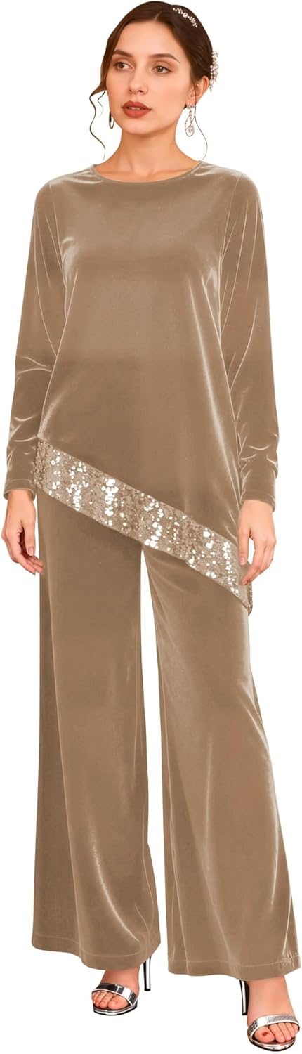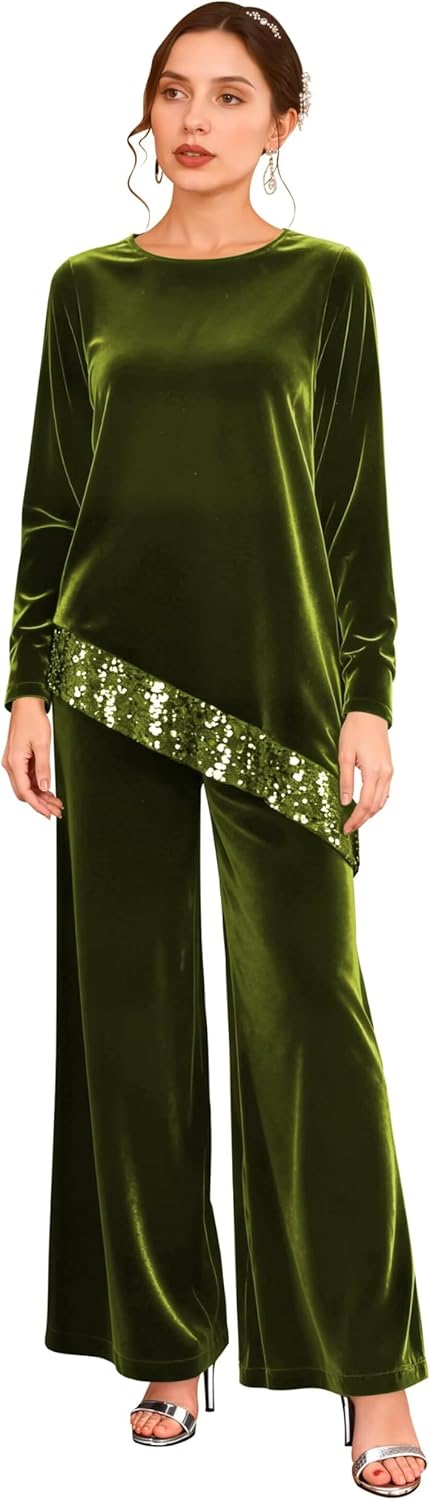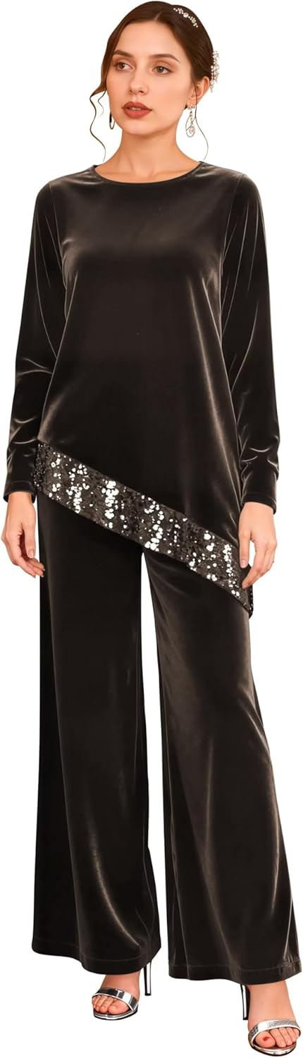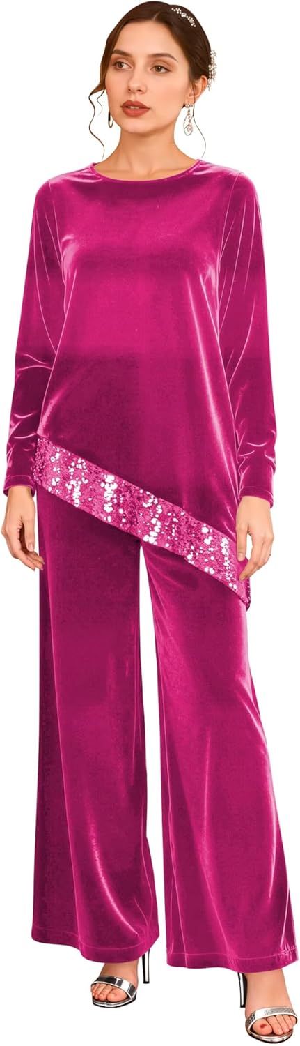 | Fabric Type | Fabric: Long Sleeves Formal Sequin Velvet Pantsuit |